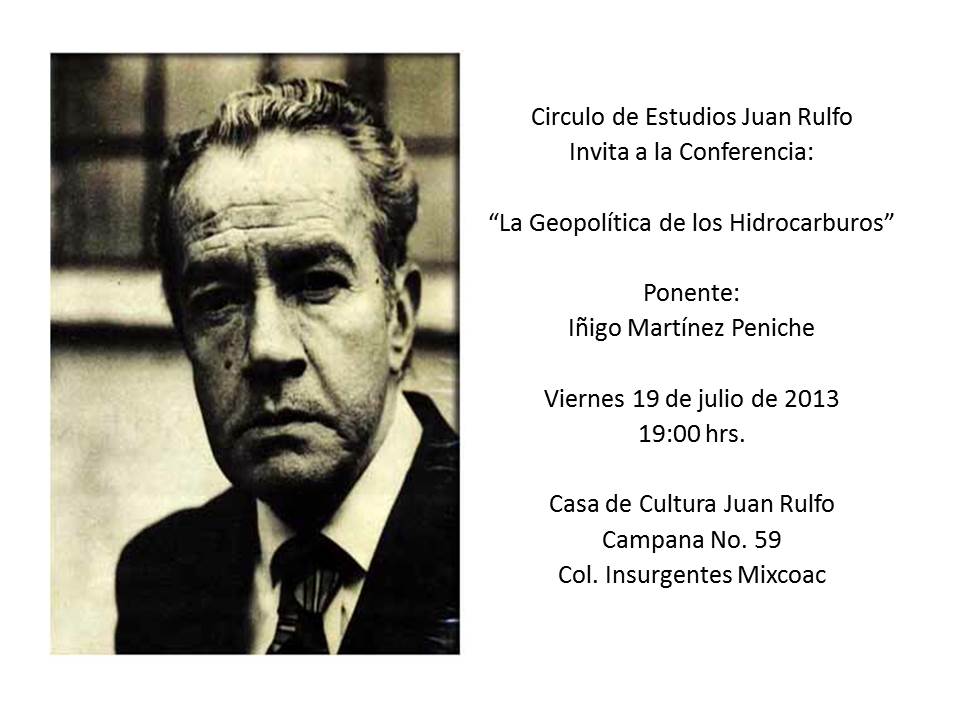 El Circulo en Benito Juárez Juan Rulfo invita a la conferencia: La geopolitica de los hidrocarburos
